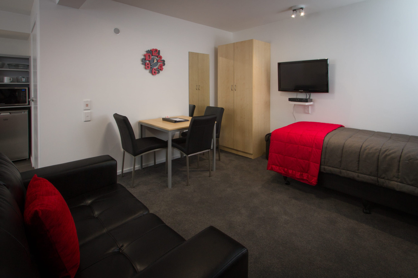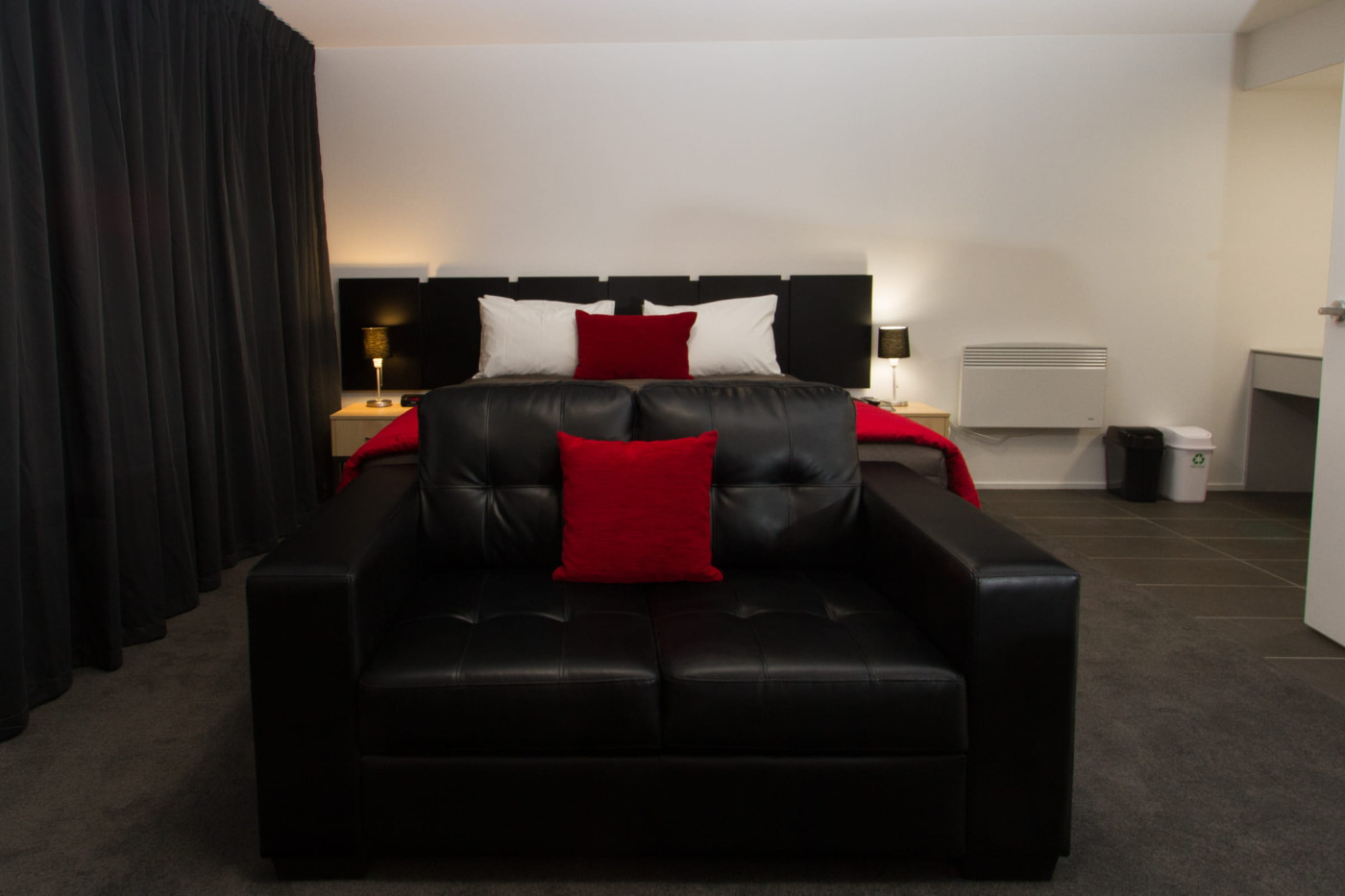 A spacious and well-appointed unit that has the added advantage of being Wheelchair Accessible and with other Accessibility features. This unit has both a king and a single bed set up where 2 separate beds are required. The kitchen has a microwave, a fridge, and a 2-burner benchtop hob. With dining table and chairs, a 2-seater couch, 42” flatscreen TV with Guest Select 50+ SKY channels to choose from, this is a very comfortable option. The beautifully tiled bathroom offers a large wet-area shower, shower seat, underfloor heating, vanity, mirrors and toilet. Handrails are installed beside the toilet and in the shower area. Beautiful and functional. Maximum capacity – 3 people.